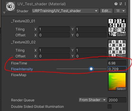Properties 메뉴에 Flow intensity와 Time을 조절하는 기능 추가하기