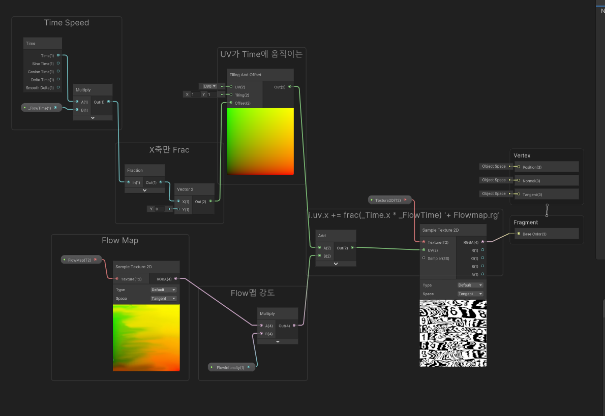 Mesh uv 방향으로 scroll 되는 shader 제작