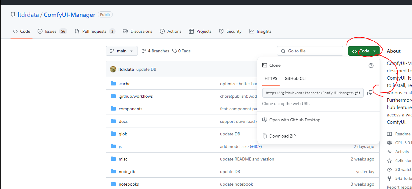 3. git clone https://github.com/ltdrdata/ComfyUI-Manager.git 을 적어준다