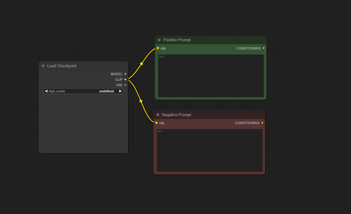그 다음 KSampler에 연결할 수 있는 긍정/부정 노드를 이어주자.
